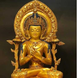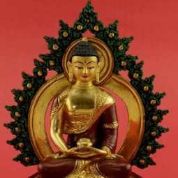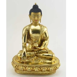 12.5″ Authentic Shakyamuni Buddha Statue, Fine Detail, Fire Gilded 24K Gold Finish, Hand Face Painted
